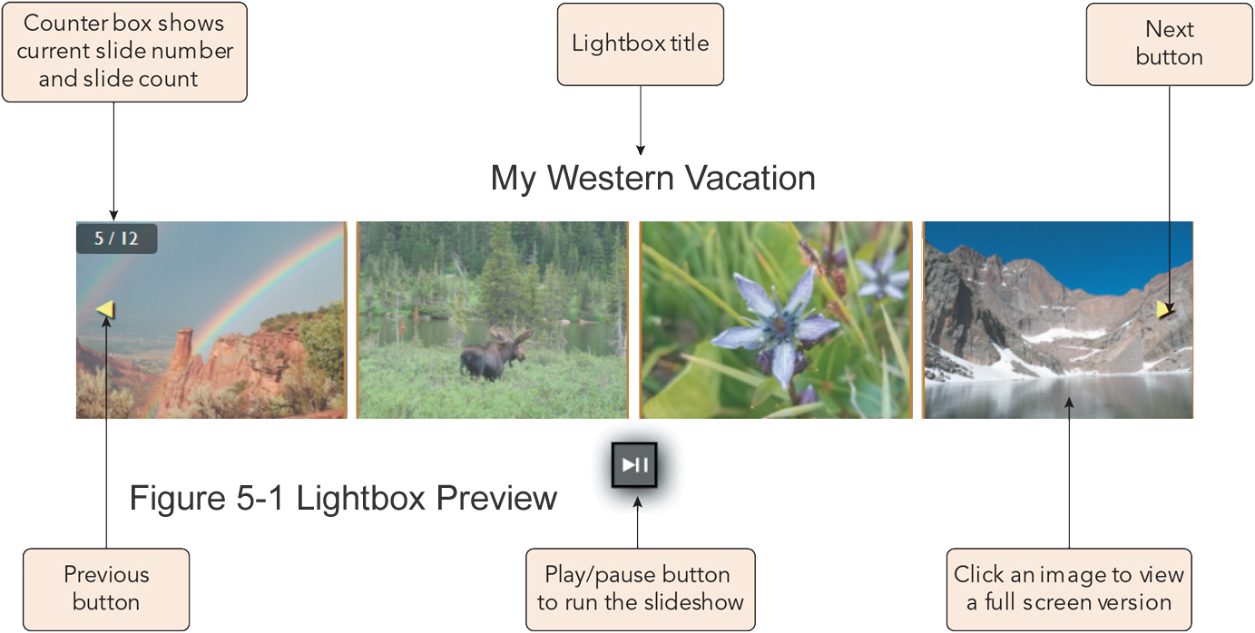 - (page 12) With HTML code editor, add script beginning and ending tag between tag <figcaption>