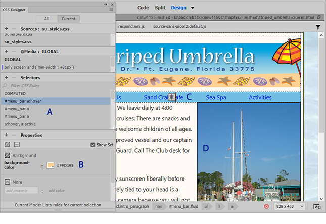 1. CSS Designer Panel, Selectors #menu_bar : hover